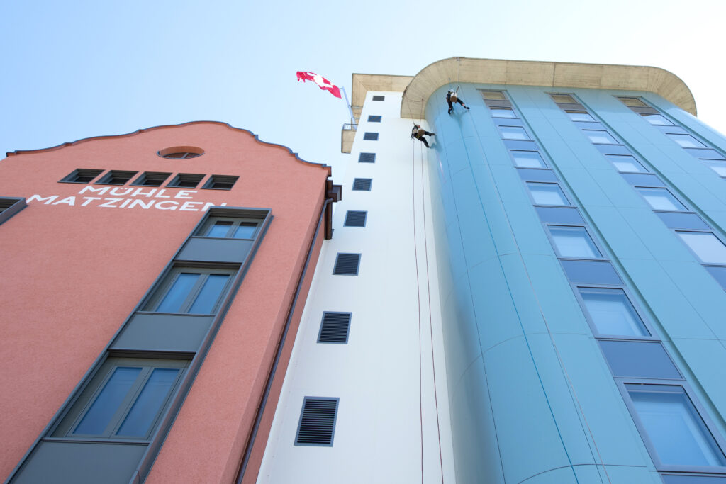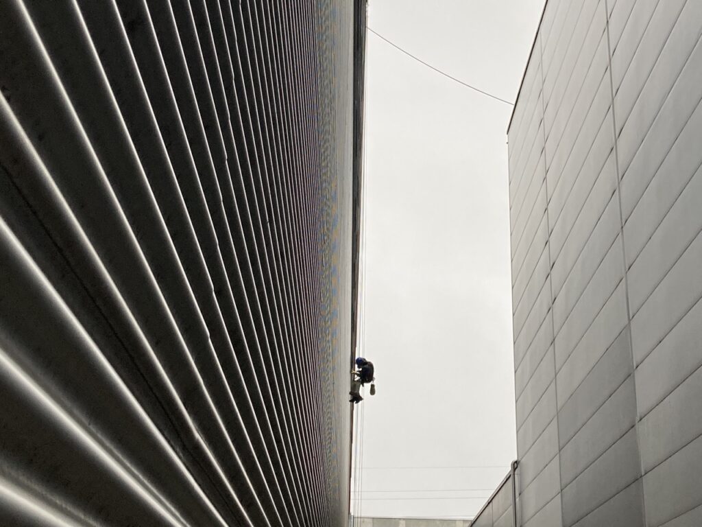 Grosse Höhen, Orte mit schwierigem Zugang, ge­rüst­freies Arbeiten – dank moderner Seil­zugangs­­technik ermöglichen wir eine kosteneffiziente Alternative zu Gerüsten oder Kränen. Ideal für Wartung, Montage, Reinigung und Inspektion an Fassaden, Industrie­anlagen, Türmen, Brücken und Hochhäusern.